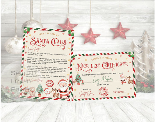 Official Letter from Santa Approved Letter + Santa Nice List Certificate, Personalised Letter from Santa, Personalised Nice List Certificate