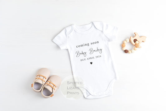 Personalised Coming Soon Announcement Baby Vest or Rompersuit