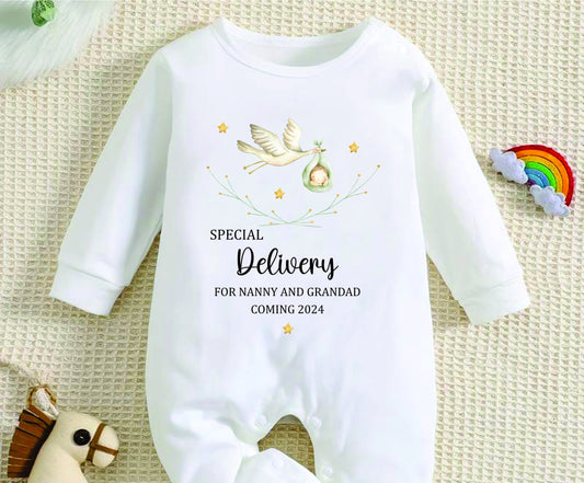 Personalised Special Delivery Stork Baby Announcement Vest/Romper - Grandparents