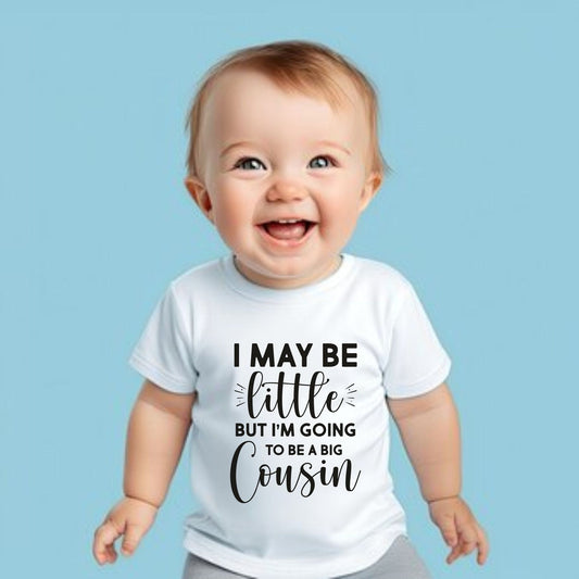 I May Be Little But I'm Going to Be A Big Cousin, Sibling Baby Vest/ Rompersuit or T-shirt Pregnancy announcement