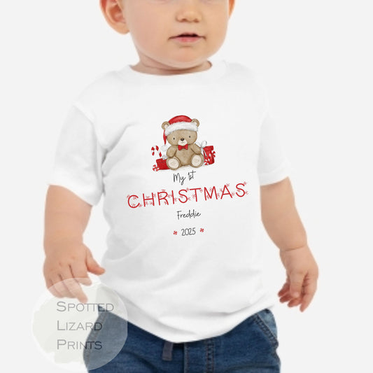 Personalised My First Christmas Baby Outfit- My First Christmas Baby Vest, Sleepsuit or T-shirt - 1st Xmas Teddy