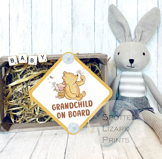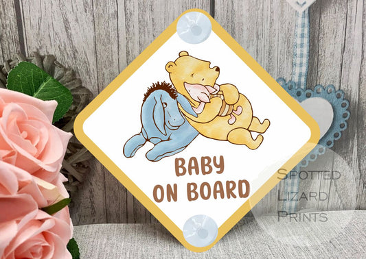 Baby on Board Sign - Child on Board Car sign - Gift for new Mum - Baby announcement - Car window sign - Winnie the Pooh car sign