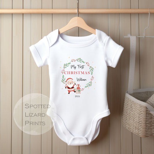 Personalised First Christmas Baby Outfit- My First Christmas Sleepsuit or Vest - 1st Xmas Cute Santa, First Christmas Pyjamas - Personalised Baby gifts