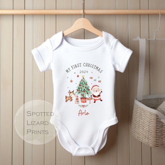 Personalised First Christmas Baby Outfit- My First Christmas Sleepsuit or Vest - 1st Xmas Cute Santa