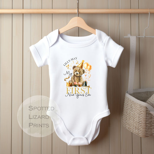 Personalised First New Years Eve Baby Outfit- My First New Years Eve Sleepsuit - 1st New Year Teddy