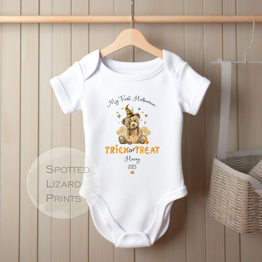 Personalised First Halloween Baby Outfit | My 1st Halloween Sleepsuit, Vest or T-shirt - Halloween Teddy Trick or Treat