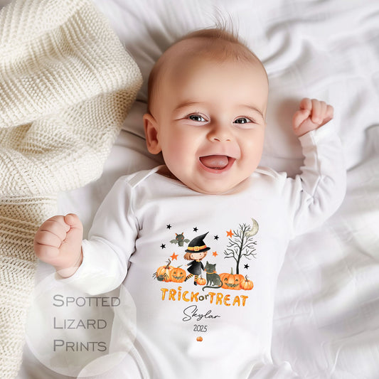 Personalised First Halloween Baby Outfit | My 1st Halloween Sleepsuit, Vest or T-shirt - Halloween Witch Trick or Treat