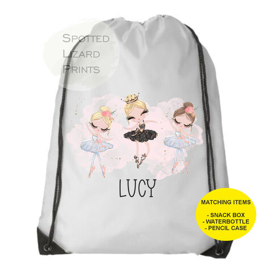 Personalised Ballerina Drawstring Bag - Kids School Bag - Swimming Bag - Back to School - Drawstring Bag Kids - PE Bag - Kit
