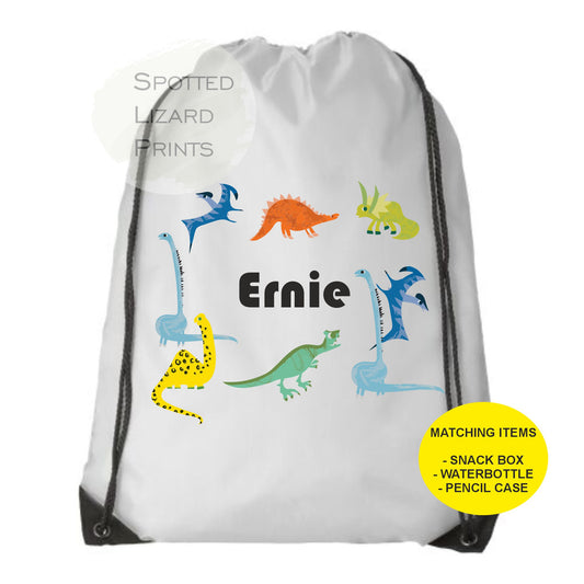 Personalised Dinosaurs Drawstring Bag - Kids School Bag - Swimming Bag - Back to School - Drawstring Bag Kids - PE Bag Kit