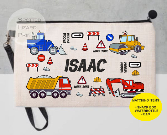 Personalised Boys Pencil Case - School Pencil Case - Kids Pencil Cases - Back to School - School Bag - Diggers - Trucks - Construction