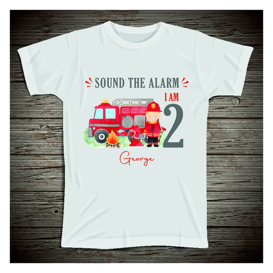 Personalised Fire Engine 1st or 2nd Birthday T-shirt Little Boy - One/Two Today - Fire Engine Birthday theme