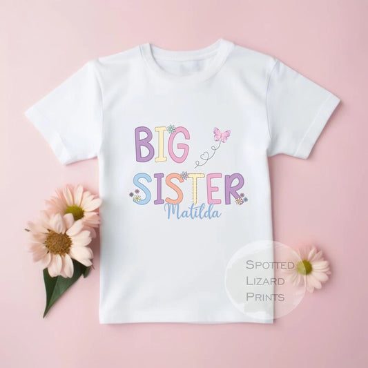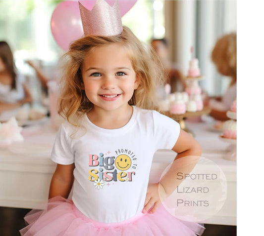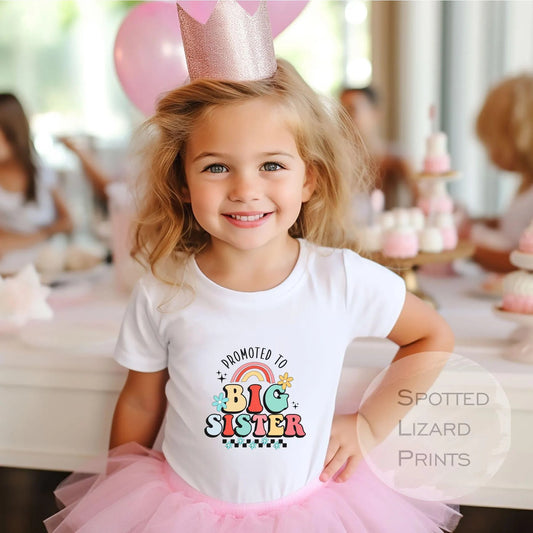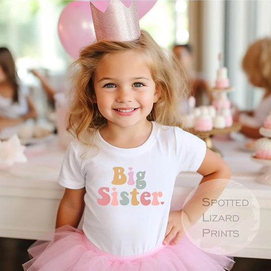 Big Sister Kids T-shirt- Sisters Toddler Clothing Cute T-shirt Siblings Gift Idea - Older Sister Retro Colours Top, Promoted to Big Sister