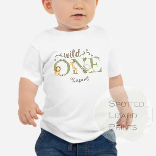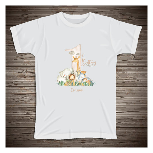 Personalised Safari Animals 1st Birthday T-shirt Little Boy, Little Girl Baby First Birthday - One Today - Safari