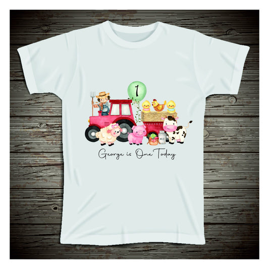 Personalised Tractor 1st Birthday T-shirt Little Boy, Baby First Birthday - One Today / Two - Birthday Age T-shirt