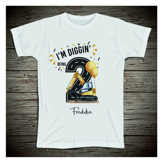 Personalised I'm Diggin Being Birthday T-shirt Little Boy - Diggers Aged T-shirt - Diggers Birthday 1-10 years theme