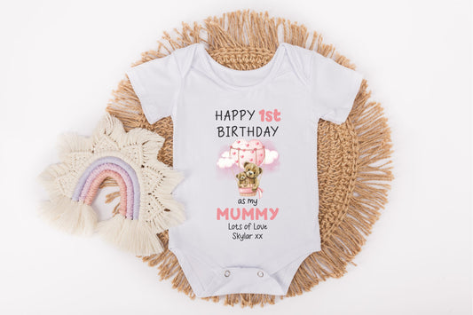 Cute Bear Happy First Birthday as my MUMMY Baby Outfit (First Birthday 1st Birthday Mummy Mum Birthday l New Mum Gift)