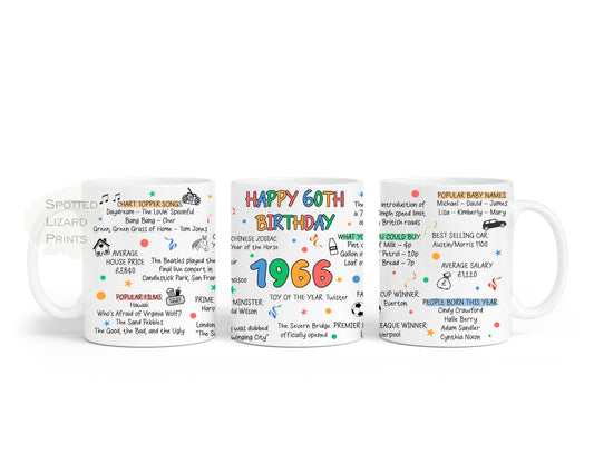 Born in 1966 Facts – Back in 1966 - 60th Birthday Mug – Unique Gift for 60th Birthday – 60 Keepsake Mug for Him, Her, Friend, Son, Daughter