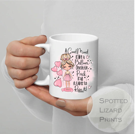 A Good mood is like a balloon, one little prick is all it takes to ruin it mug Funny Awesome Novelty Gift - Best Friend Gift