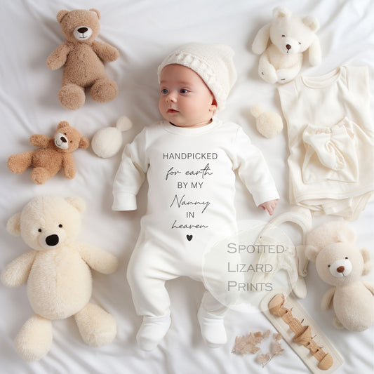 Handpicked for earth by my Grandparent in Heaven Baby Vest or Rompersuit New Baby announcement - Welcome to the world - Coming Home Outfit
