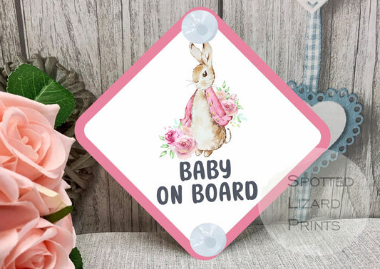 Baby on Board Sign - Child on Board Car sign - Gift for new Mum - Baby announcement - Car window sign - Peter Rabbit car sign