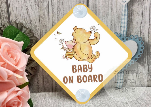 Baby on Board Sign - Child on Board Car sign - Gift for new Mum - Baby announcement - Car window sign - Winnie the Pooh car sign