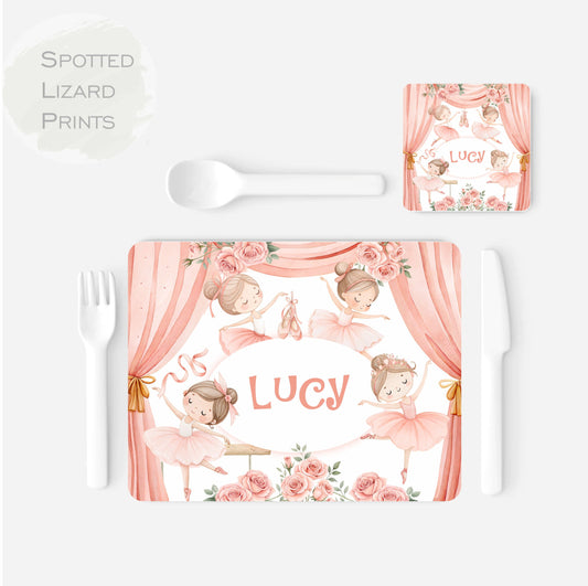 Personalised Ballet Placemat and Coaster Set, Kid's Dinner Set, Ballet gift, Children's Birthday Gift, Ballerina Placemat