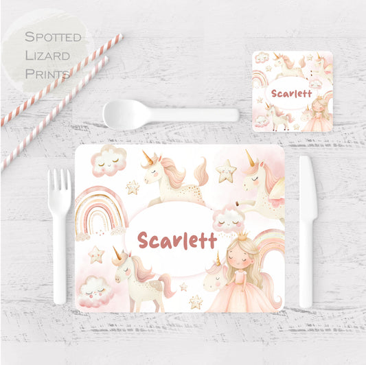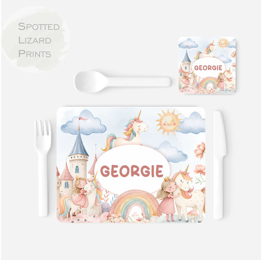 Personalised Unicorn Placemat and Coaster Set, Kid's Dinner Set, Unicorns gift, Children's Birthday Gift, Unicorn Placemat