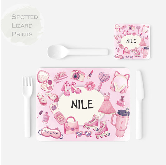 Personalised Girls Pamper Placemat and Coaster Set, Kid's Dinner Set, Make up Placemat, Children's Birthday Gift, Girls Party Placemat