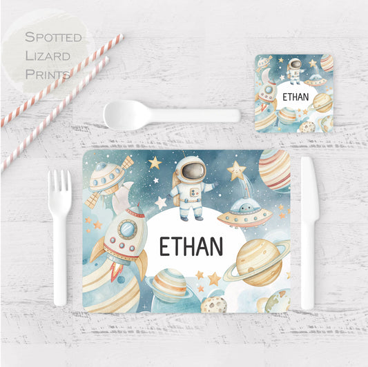 Personalised Space Placemat and Coaster Set, Kid's Dinner Set, Space gift, Children's Birthday Gift, Robots Alien Placemat