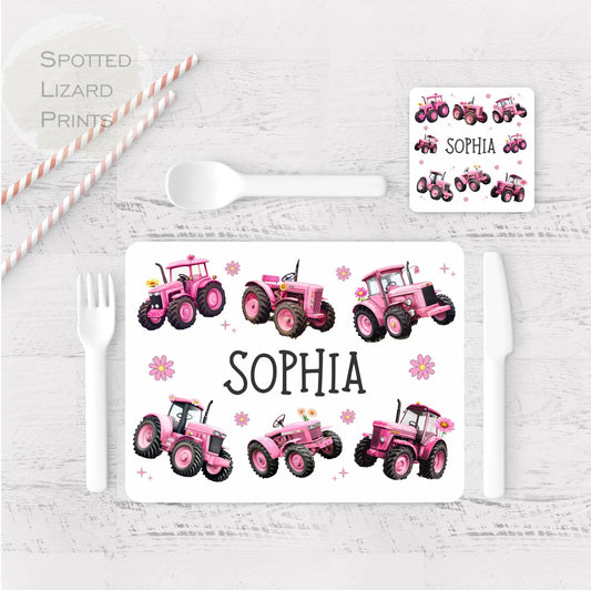 Personalised Tractors Placemat and Coaster Set, Kid's Dinner Set, Tractors gift, Children's Birthday Gift, Tractors Placemat