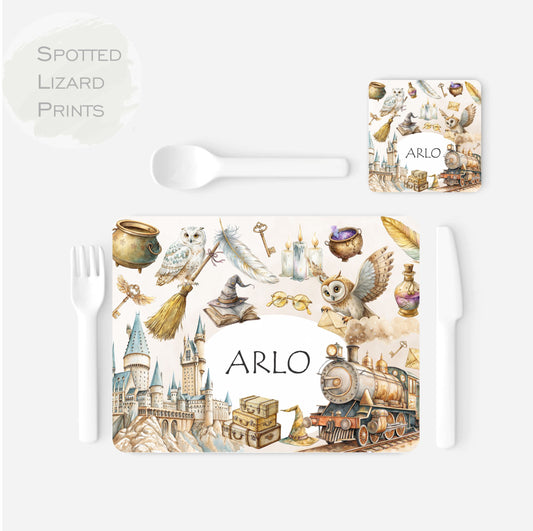 Personalised Wizard Placemat and Coaster Set, Kid's Dinner Set, Wizard gift, Children's Birthday Gift, Wizard Placemat
