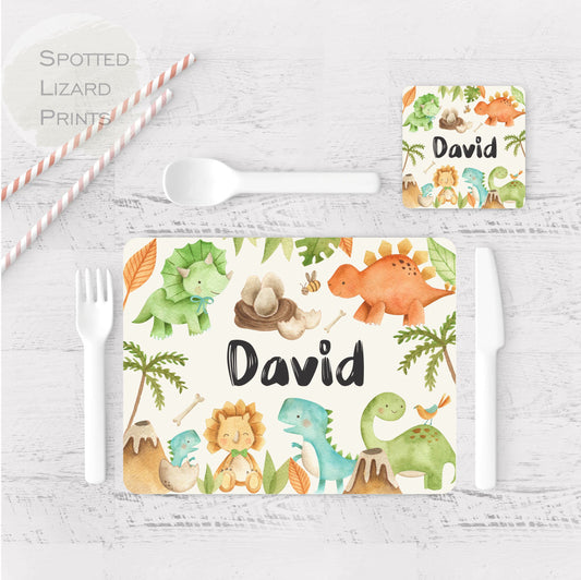 Personalised Dinosaur Placemat and Coaster Set, Kid's Dinner Set, Dinosaurs gift, Children's Birthday Gift, Dinosaurs Placemat