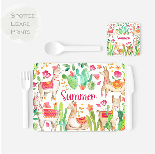 Personalised Llamas Placemat and Coaster Set, Kid's Dinner Set, Llama gift, Children's Birthday Gift, Llama Placemat