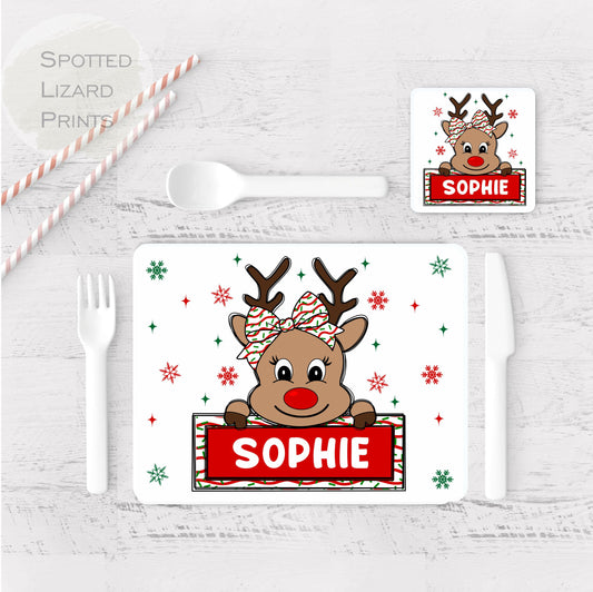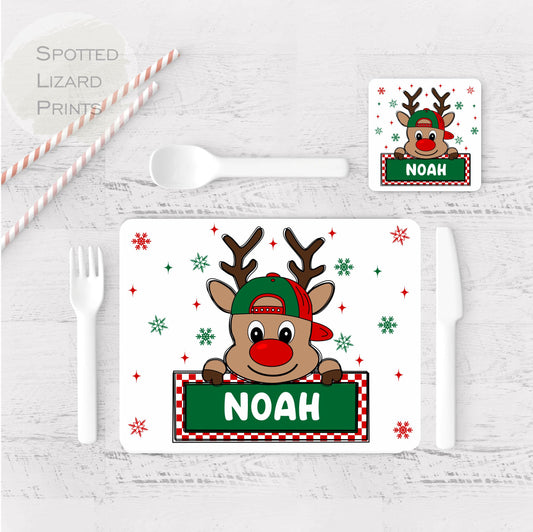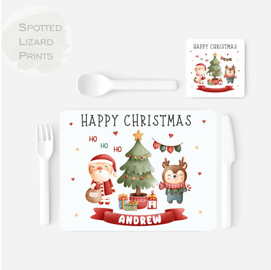 Personalised Christmas Placemat and Coaster Set, Kid's Dinner Set, Christmas gift, Children's Birthday Gift, Christmas Placemat