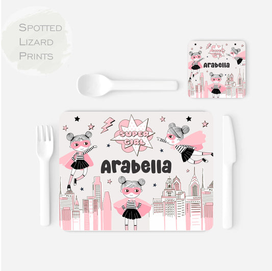 Personalised Superhero's Placemat and Coaster Set, Kid's Dinner Set, Superhero gift, Children's Birthday Gift, Superheros Placemat
