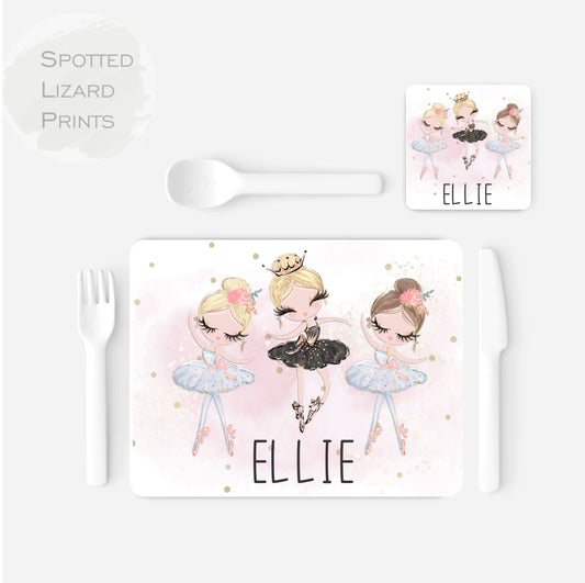 Personalised Ballet Placemat and Coaster Set, Kid's Dinner Set, Ballet gift, Children's Birthday Gift, Ballerina Placemat