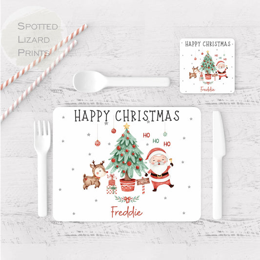 Personalised Christmas Placemat and Coaster Set, Kid's Dinner Set, Christmas gift, Children's Birthday Gift, Christmas Placemat