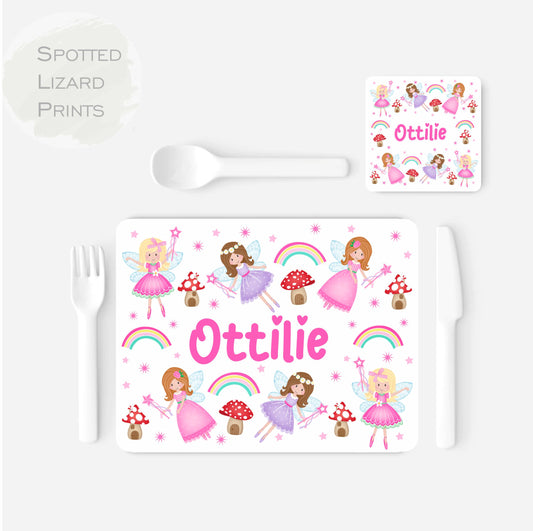 Personalised Princess Placemat and Coaster Set, Kid's Dinner Set, Fairies gift, Children's Birthday Gift, Fairies Placemat