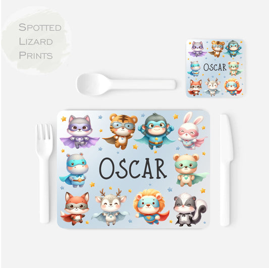 Personalised Superhero's Placemat and Coaster Set, Kid's Dinner Set, Superhero gift, Children's Birthday Gift, Superheros Placemat