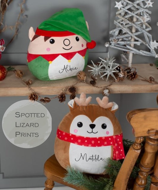 Personalised Squishy - Mumbles Squidgy Animal - Christmas teddy, Christmas Eve Box Filler, Christmas Eve Gift, Reindeer teddy - Elf Teddy