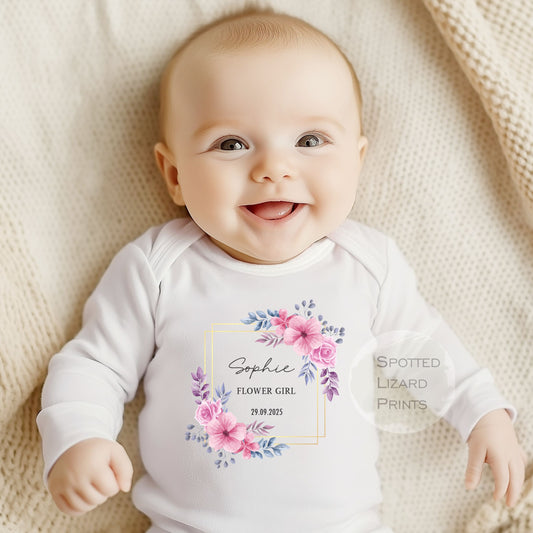Personalised Flower Girl Baby Rompersuit/Sleepsuit/Bodysuit - Thank you, Wedding Gift, Flower Girl Gift