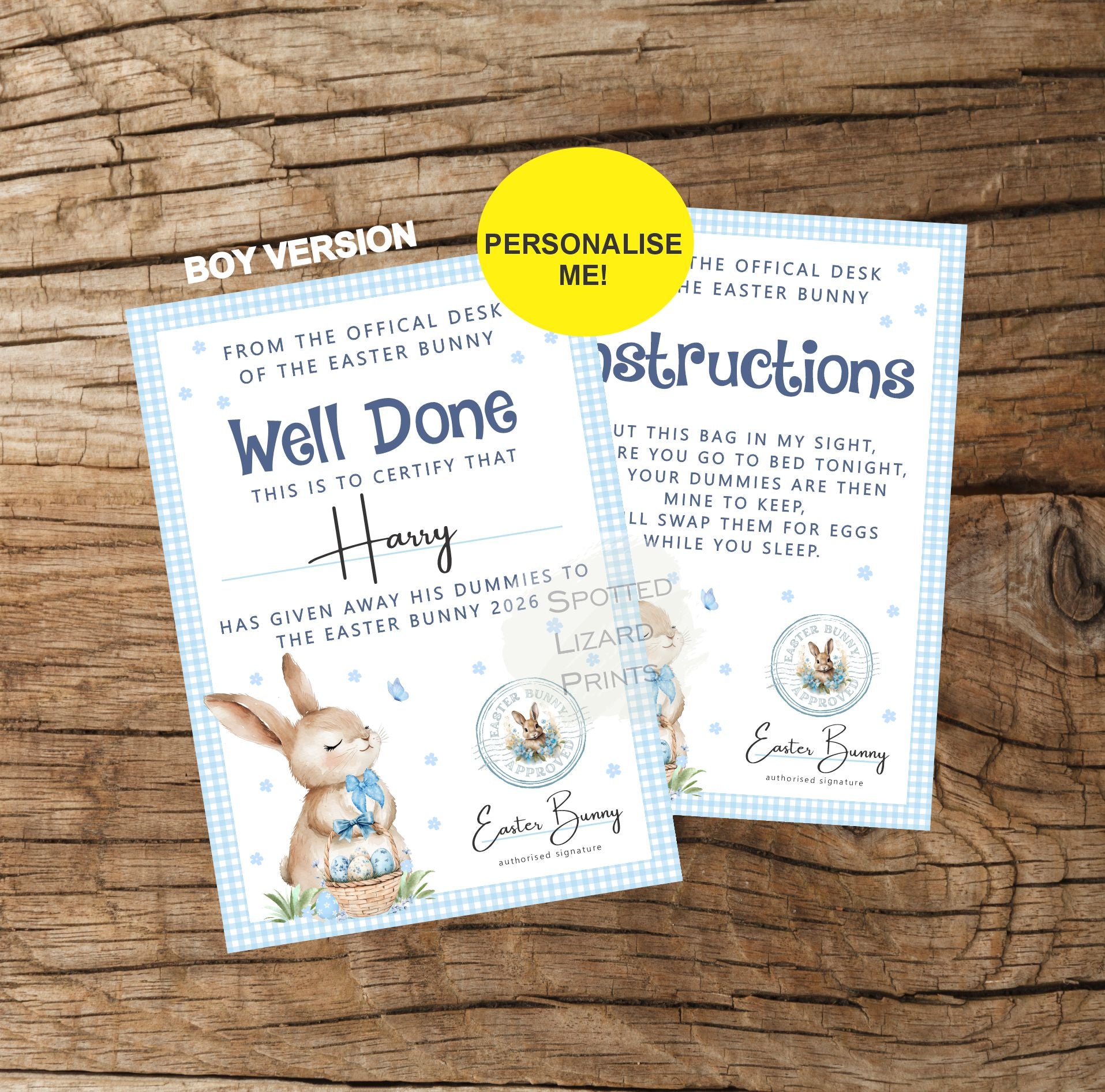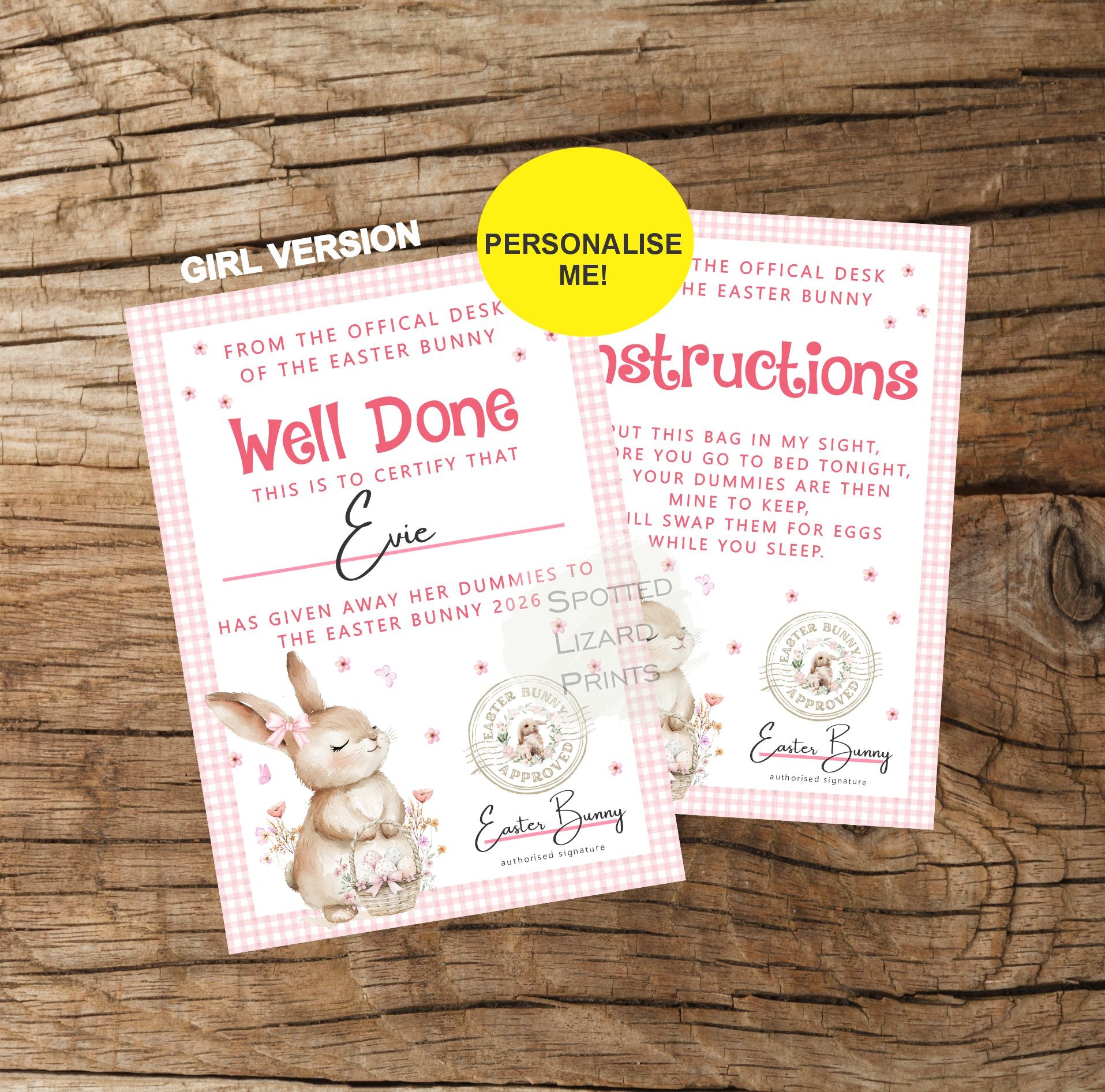 Personalised Dummy for The Easter Bunny and Letter, Dummies Bag for Easter Bunny, Dummy for Easter Baby Pouch and Note, Dummy Fairy Bag