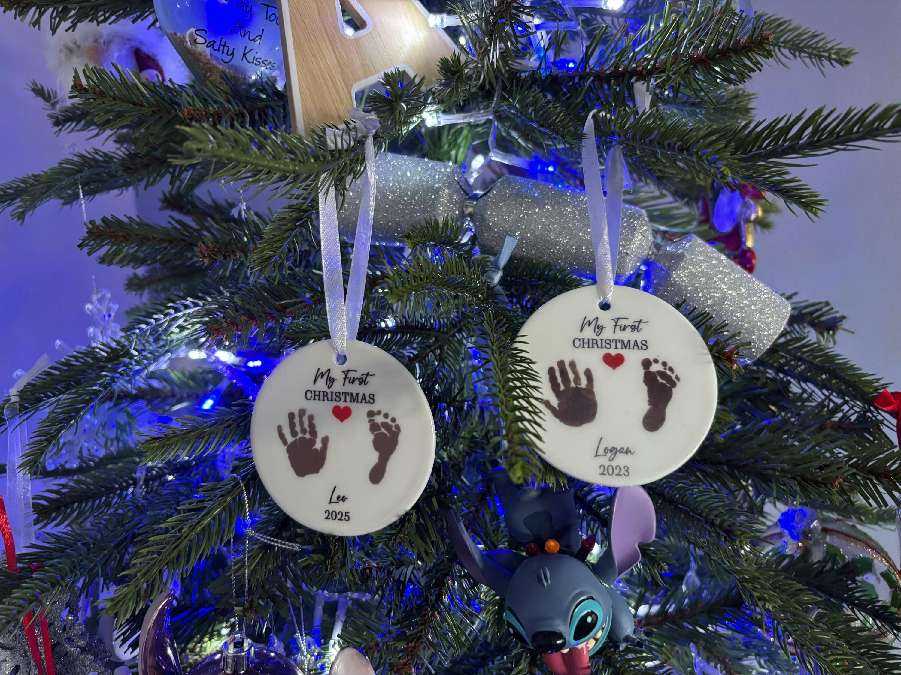Personalised My first Christmas Bauble, Babies 1st Christmas Bauble | Baby foot and Hand Prints – Baby First Xmas Ornament