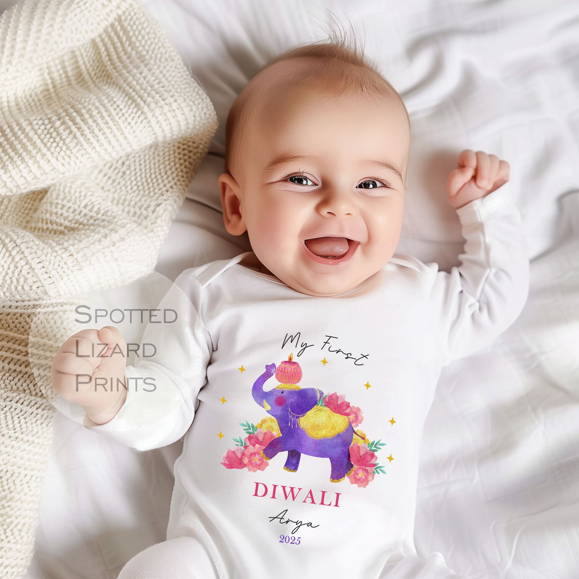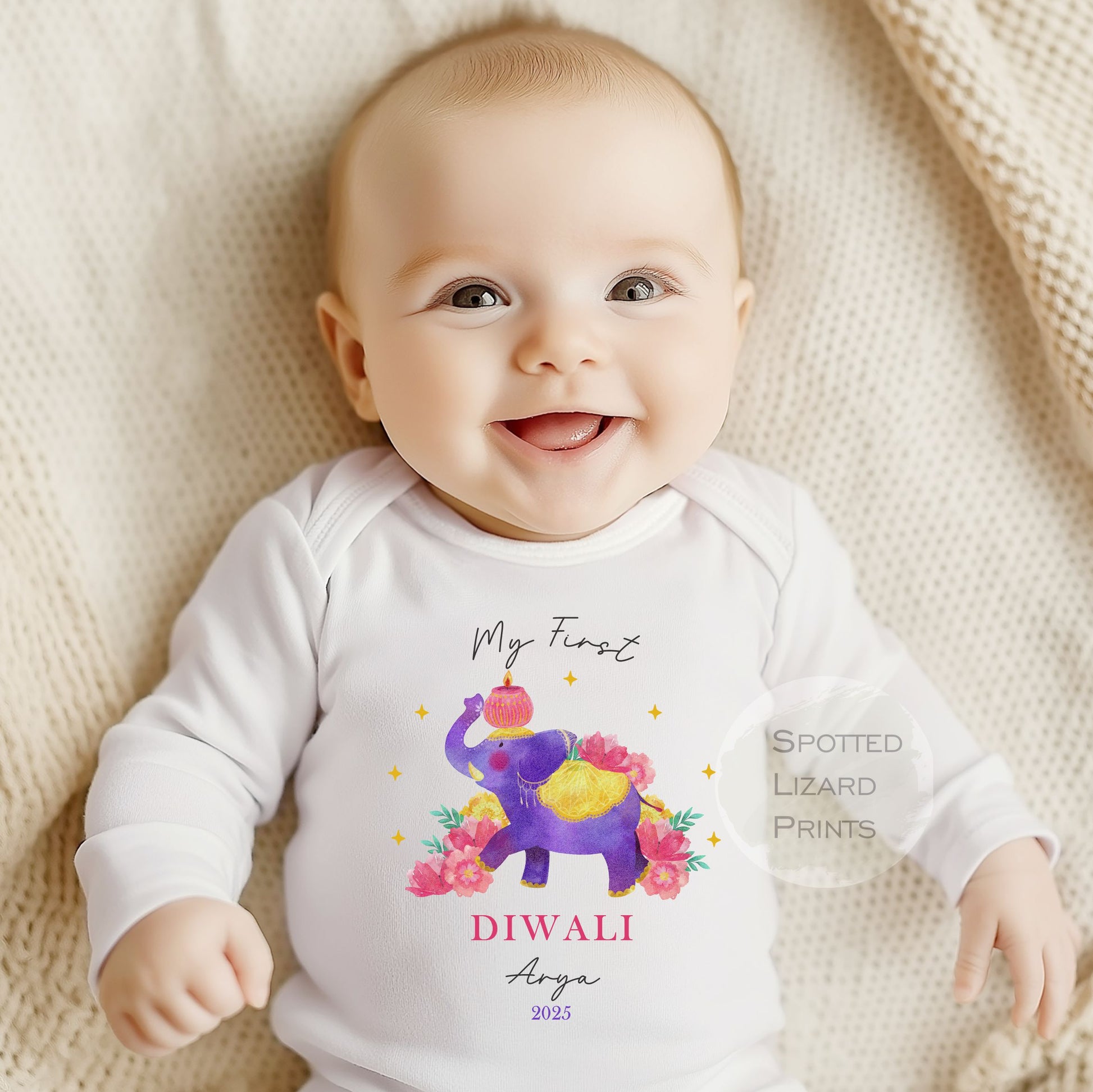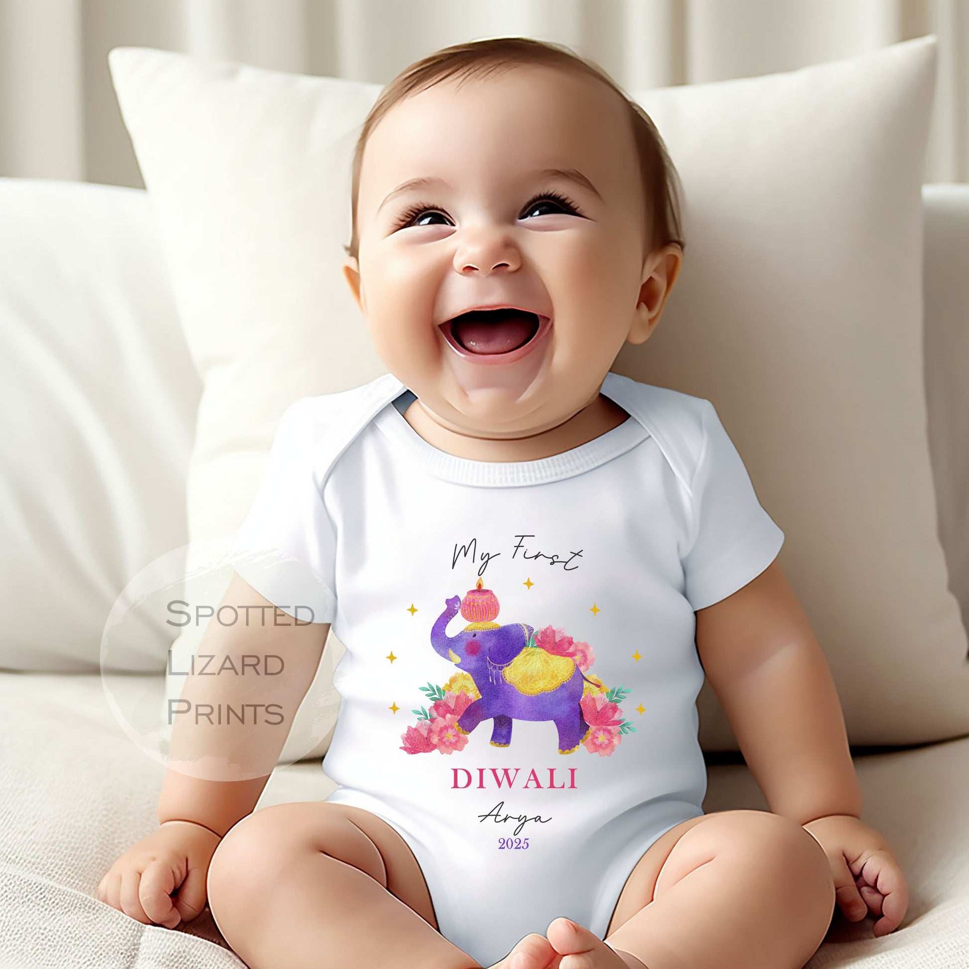 Our Baby Vests and sleepsuits are a fantastic way to celebrate Diwali. These personalised personalised Diwali Baby Vests and Sleepsuits can all be personalised for that unique personal touch. We can alter the design and even take special requests to suit your needs.