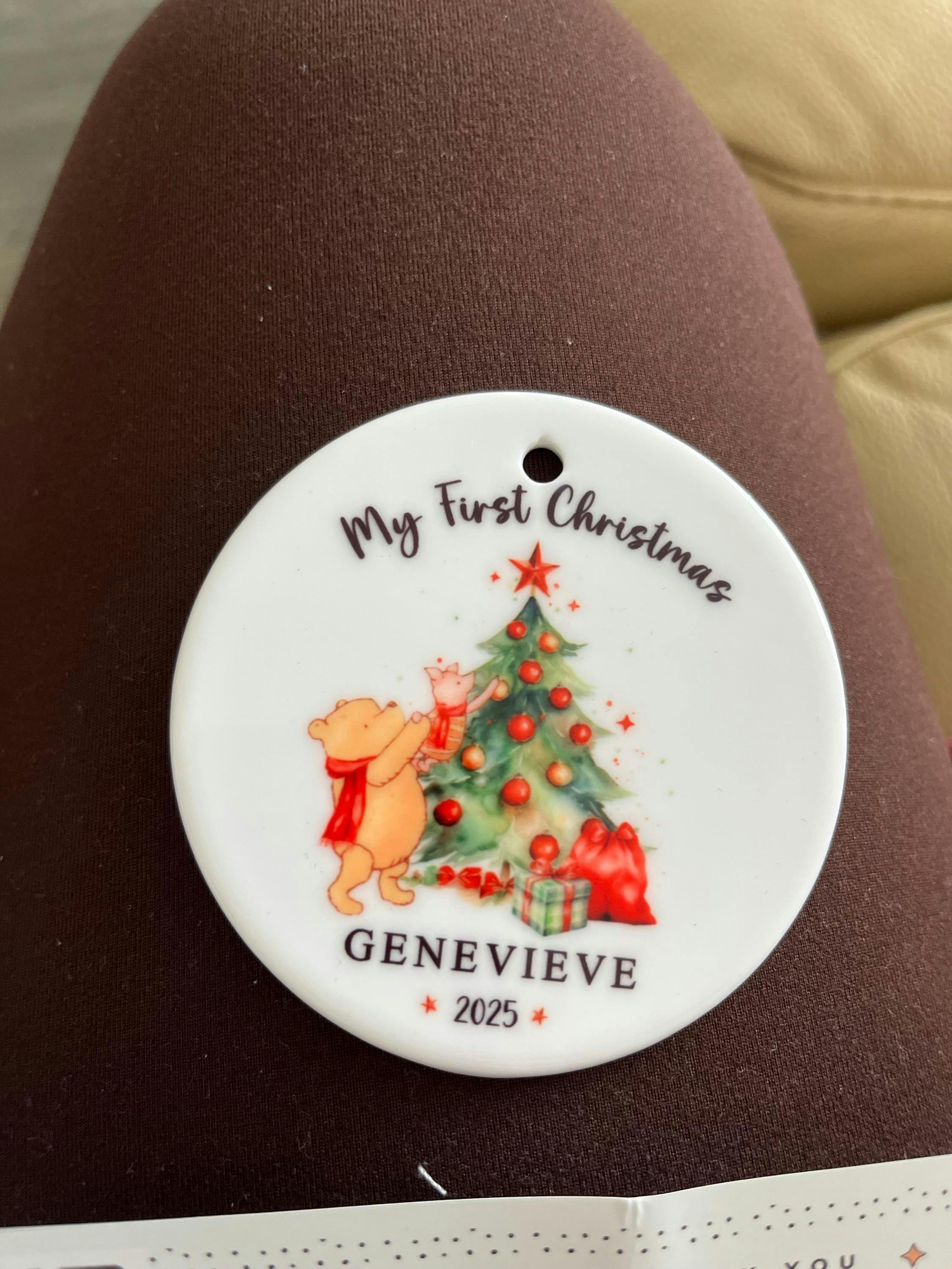 These my first Winnie the Pooh Christmas personalised Baubles can all be personalised with a name. They are an amazing Christmas Gift for a Babies first Christmas. The high quality print will last for years, meaning they can be used for many years as a Christmas decoration. The high gloss finish finish makes the design stand out.